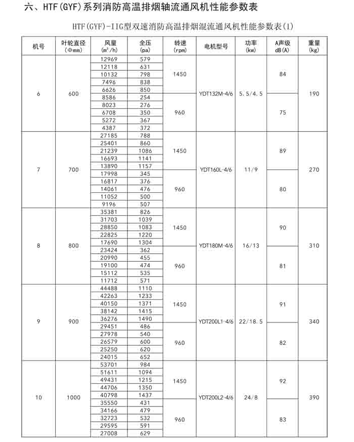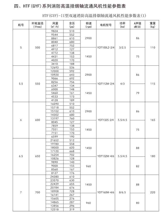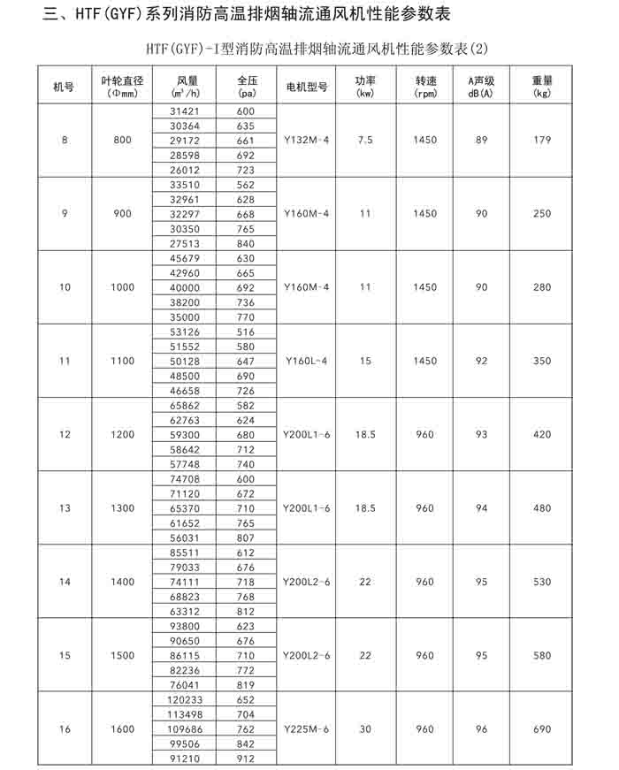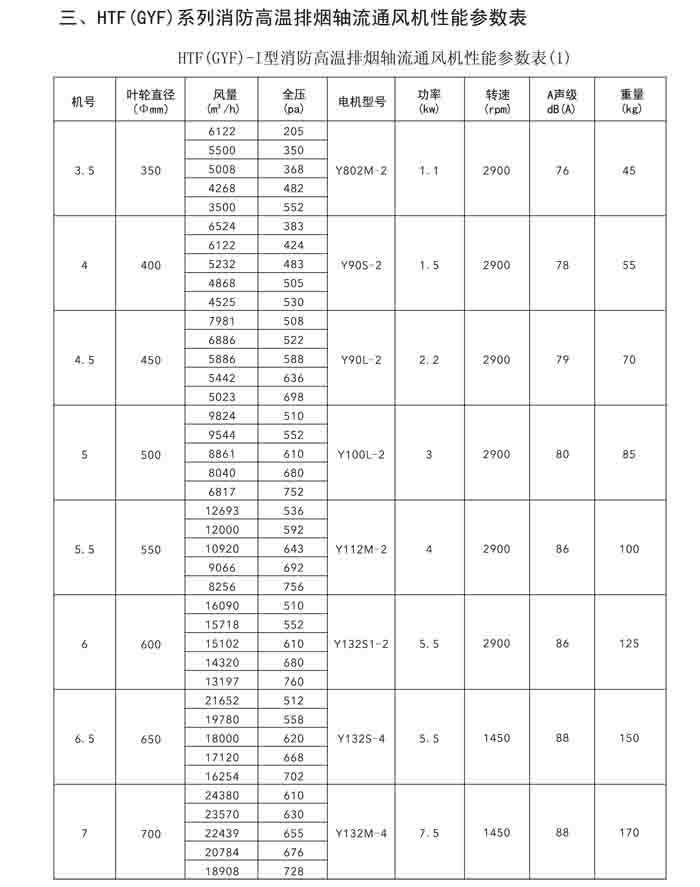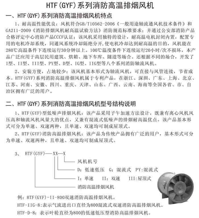 一、HTF(GYF)-I、II、III、D、G、IIG 系列消防排煙軸流風(fēng)機(jī)