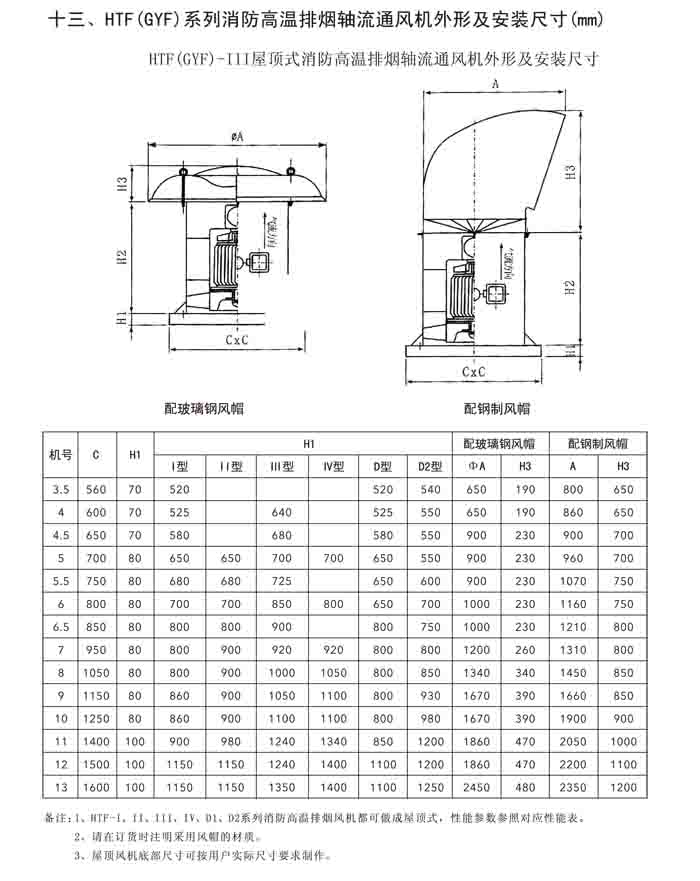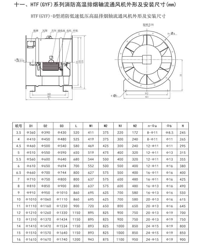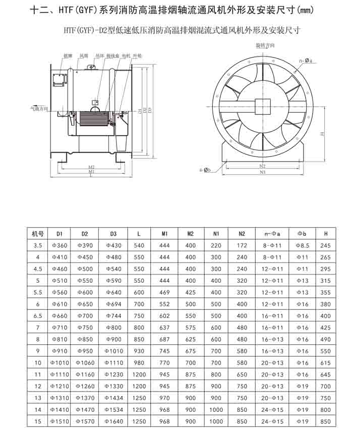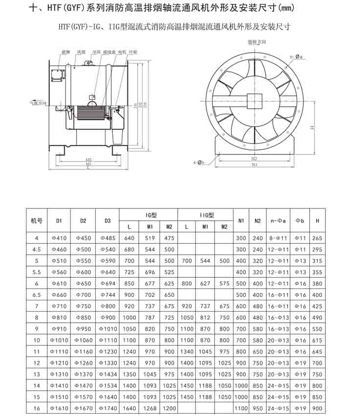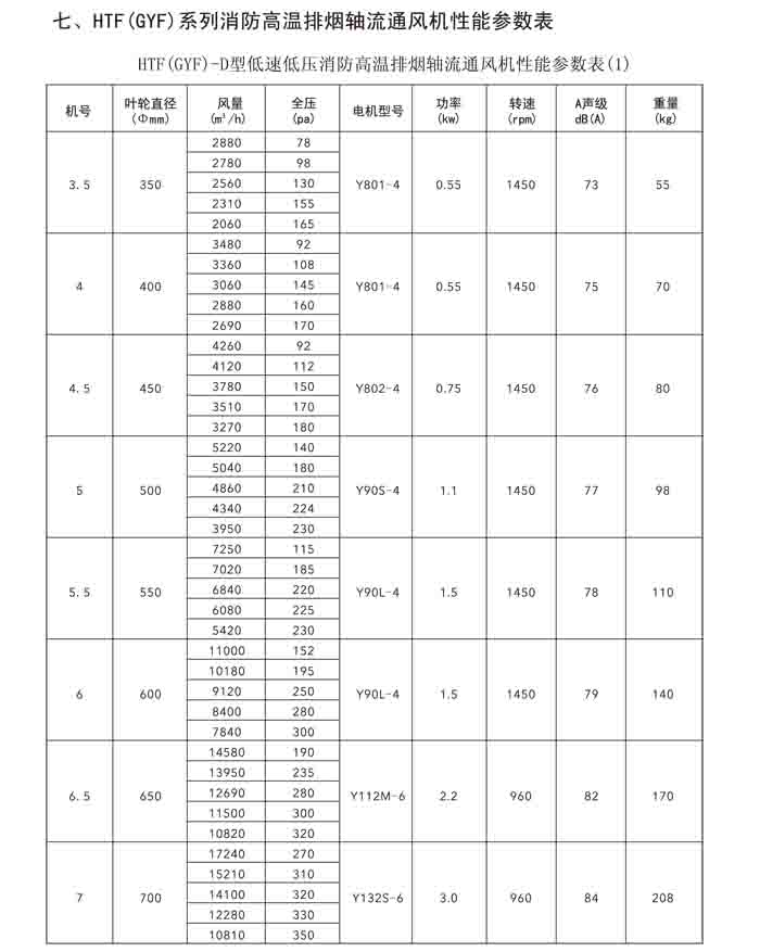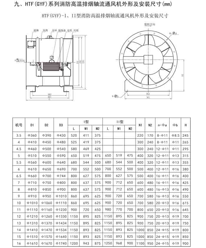 一、HTF(GYF)-I、II、III、D、G、IIG 系列消防排煙軸流風(fēng)機(jī)