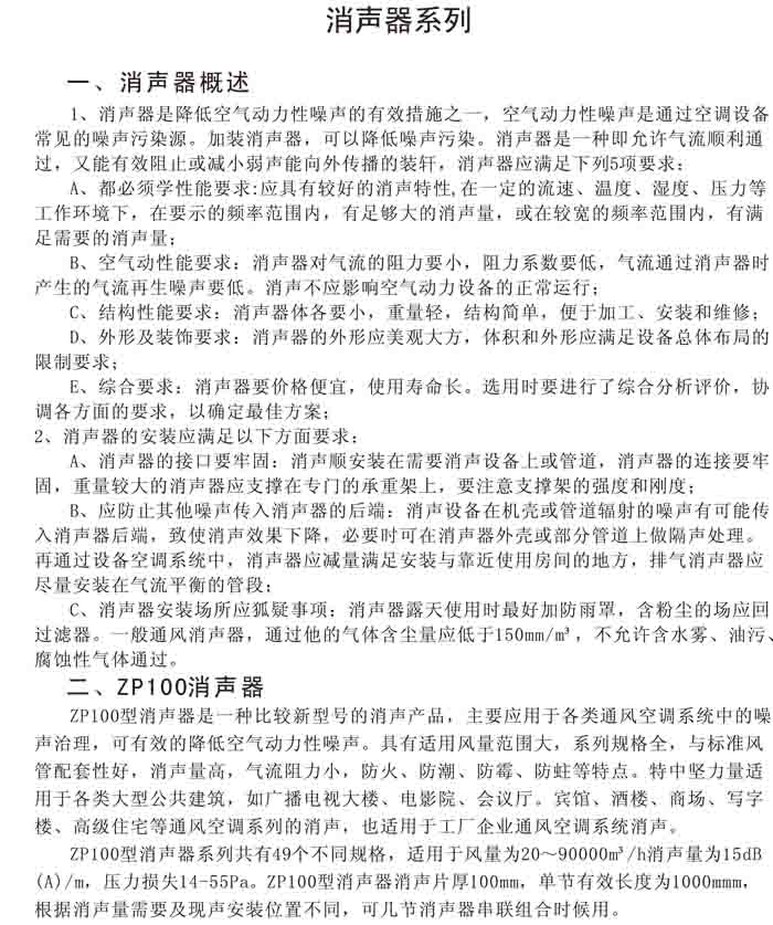 四、ZP、ZG、T701-6、WX 系列風機配套消聲器、ZJ靜壓箱